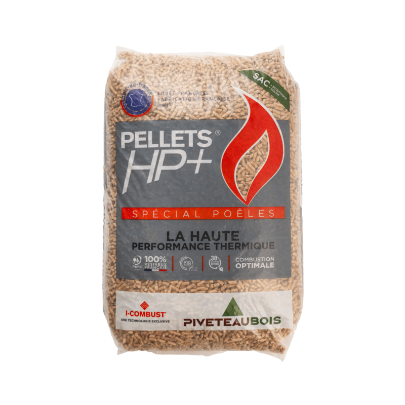 HP+ Piveteau träpellets tillverkas i Frankrike av 100 % jungfruligt barrträ. Utan tillsatser och torkade vid låg temperatur (80 °C) garanterar de ett högt energivärde (5 kWh/kg), en låg fukthalt (≤ 6,2 %) och en askhalt på < 0,3 %. Pall med 72 säckar à 15 kg för effektiv och miljövänlig uppvärmning.